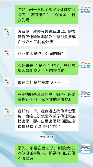 不法分子就亮出皇家物流的营业执照,表示是非常专业的运营商,推广了上万家店铺。“既然你质疑,那你可以不做”,来一招欲擒故纵。